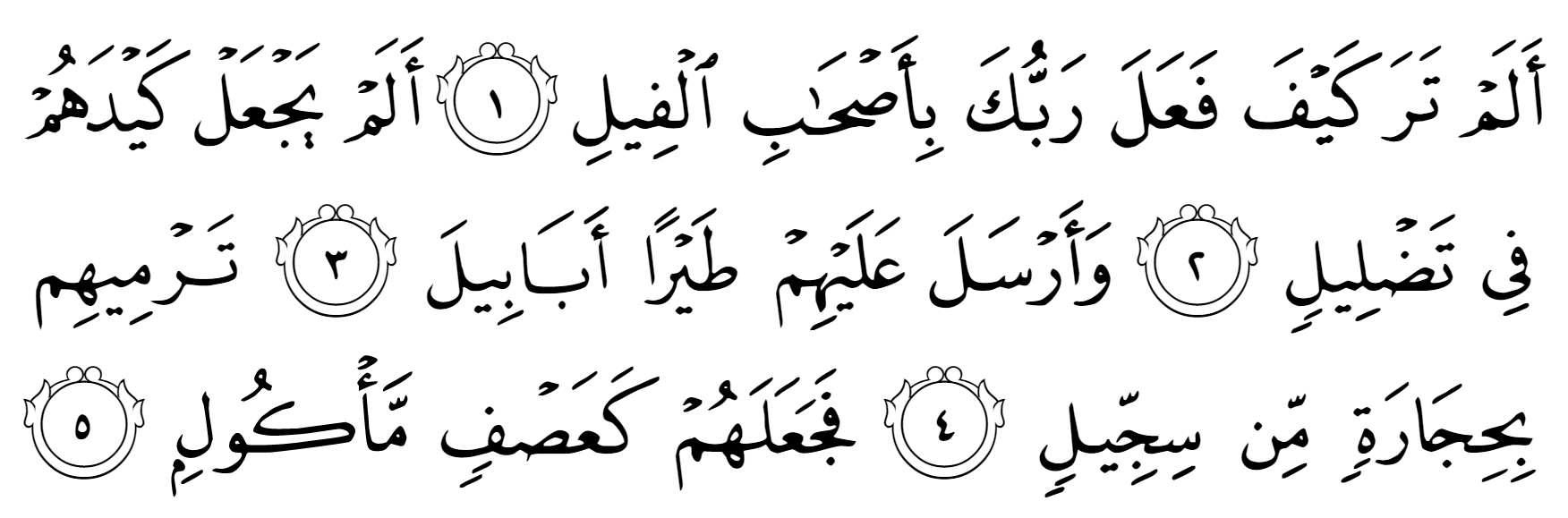 আল্লাহ تعالى এখানে ভয়ংকর বর্ণনা দিয়েছেন পাখির আক্রমণের পর আবরাহার বাহিনীর কী বীভৎস অবস্থা হয়েছিল। তারা যে শুধু খড়কুটোর মতো পড়ে ছিল তা নয়, বরং চিবানো খড়কুটোর মতো। গবাদি পশু খড়কুটো চিবিয়ে ফেলে দিলে যে অবস্থা হয়, ভেজা-স্যতস্যাতে, রস গড়িয়ে পরা, পচা দুর্গন্ধযুক্ত, দুমড়ে মুচড়ে যাওয়া খড়কুটো, ঠিক সেই অবস্থা হয়েছিল আবরাহার বাহিনীর। মানুষের উপর বুলেট বৃষ্টি করে ঝাঁজরা করে দিলে সে এক বিকট দৃশ্য হয়। সেই বীভৎস দৃশ্যের বর্ণনা দেওয়া হয়েছে এখানে।